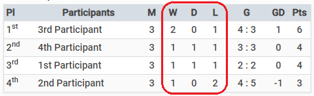 - Suppress Num Matches: If this box is activated the number of matches for each team will be hidden.